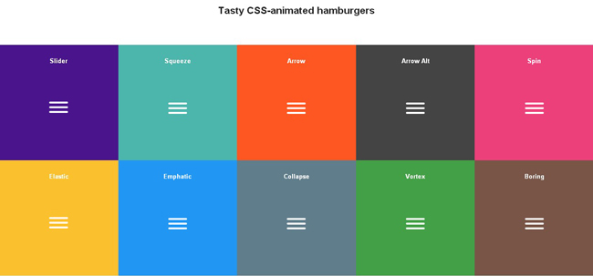 Tasty Hamburgers is a collection of tasty CSS-animated hamburger icons. There are 10 animated hamburger icons and also included is the source as a Sass library(Download and unzip the source files.