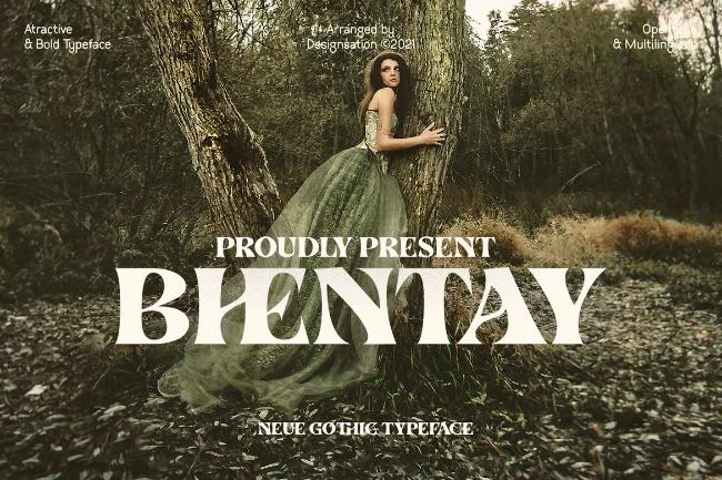 Bhentay Experimental gothic serif typeface. Fit for any Headline needs, especially Movie or Film poster, Magazine, Creative Company, Video Game, Mobile Game, Horror, Thriller, documentary needed, also used for printed design, web font, branding, logo type, and Social media promotion.