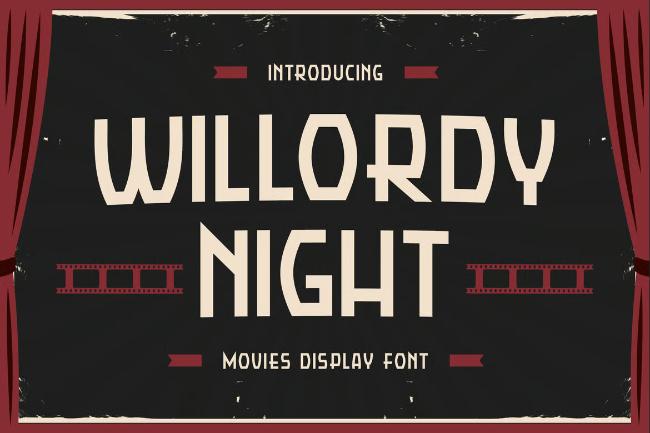 Willordy Night is a Movie font that will immediately take you into adventure vibes. This font will be the ideal choice for any cinema, game, and theater-themed design you wish to develop