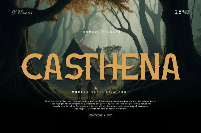 Introducing “Casthena,” a modern serif film font that embodies sophistication and cinematic elegance. Perfect for filmmakers, designers, and creatives aiming to enhance their projects with a refined touch, Casthena merges classic serif elements with contemporary styling to create a distinctive and timeless typographic experience.