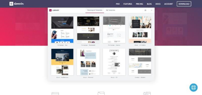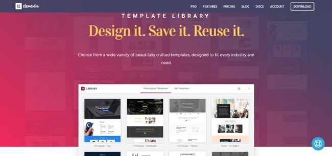 Elementor’s template library places a comprehensive selection of attractive pre-designed templates at your disposal. These pre-designed templates address a variety of industry sectors and website styles together with some specific needs. You can also create or import your own templates, add them to your library, and/or share them with other web designers.