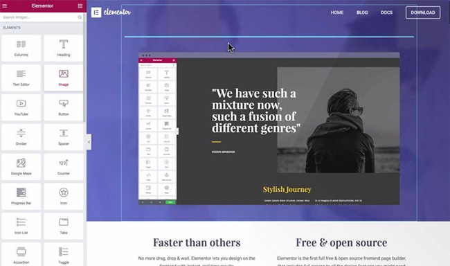 Elementor is a free, open source frontend page builder that gives you complete access to whatever website design features you need. Pre-designed templates are fully customizable, and you can design your website piece by piece, section by section, and from top to bottom using a building block approach, and without any need for coding.