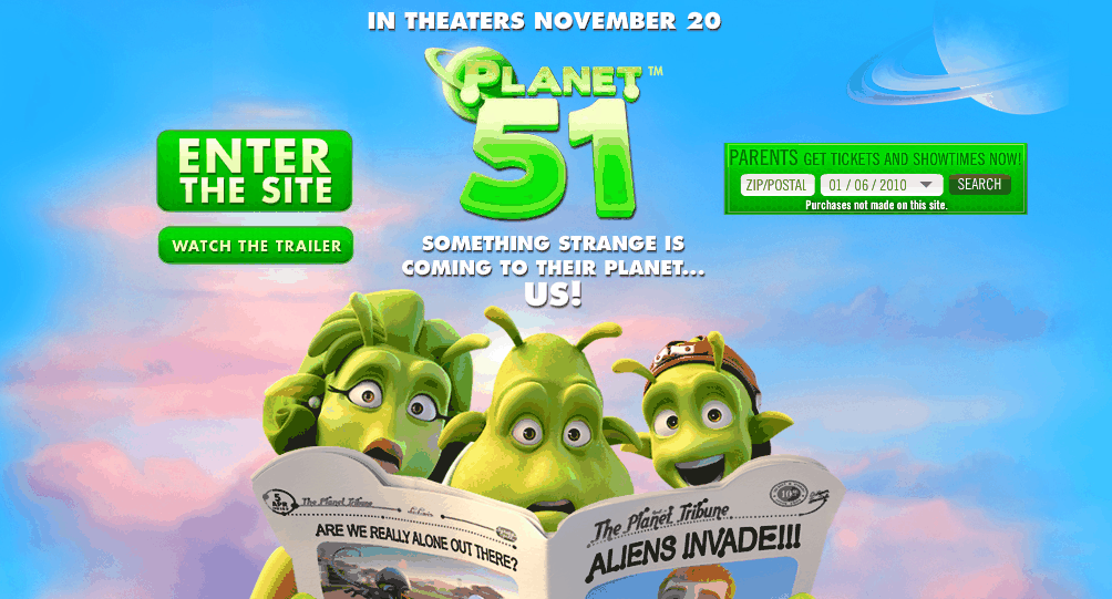 Trigger just launched a new site for sony Picture’s new animated film Planet 51