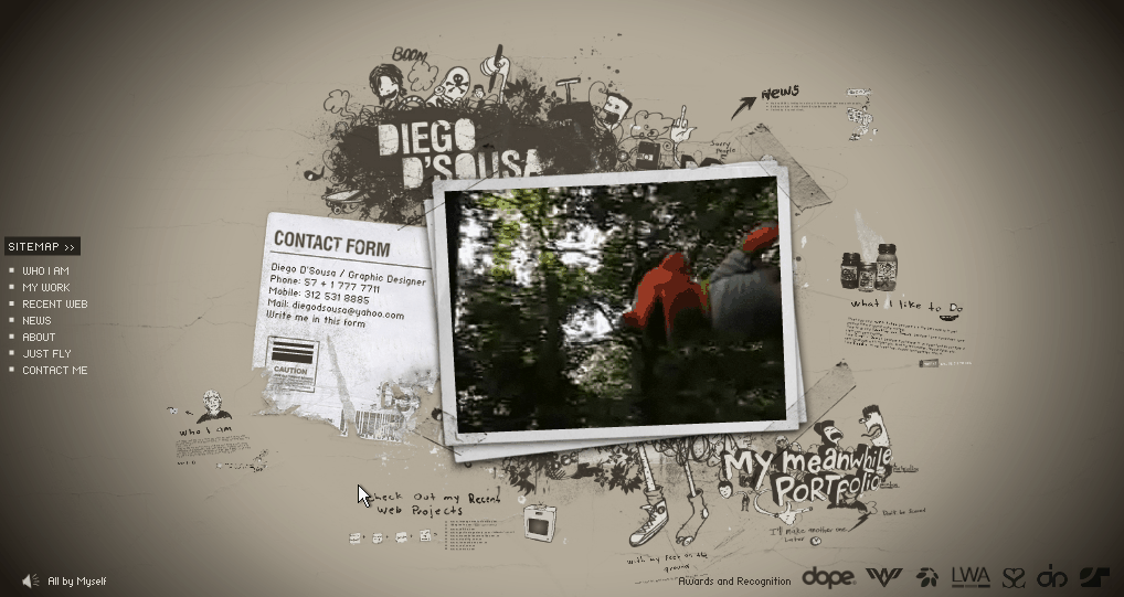The crazy portfolio of a scene director from Brazil.The layout is a mix different genres:comedy,terror,romance.