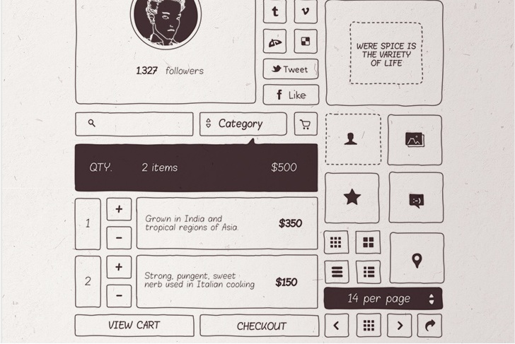 A web ecommerce UI kit in vector format, making it fully editable and resizable.