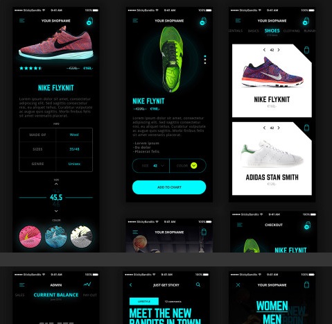 A fantastic kit for mobile sports product stores, featuring 21 screens in PSD format.