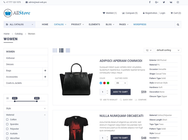With a clean, modern design and excellent UX used by ecommerce leaders, AllStore shopping site template is perfect for the many types of industry like food store, clothes shop, jewelry shop, electronics shop, retail fashion women, fashion men and kids store. It is unique by it’s clean design and the high variety of features.