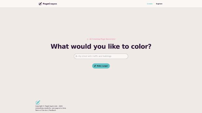 | PageCrayon | Easy-to-use AI that helps you make your own coloring pages just by describing what you want to see. |
