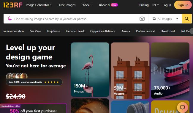 123RF offers a global marketplace for stock photos, vectors, and illustrations. The platform is known for competitive royalty rates and a straightforward submission process.