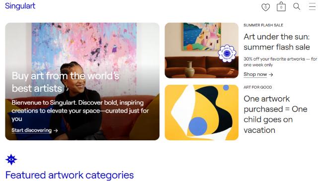 Singulart operates as a curated online gallery featuring emerging and established artists. The platform focuses on contemporary art and has expanded to include digital works.