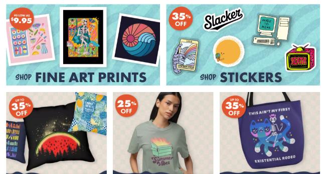 Society6 operates similarly to Redbubble but with a more curated, artistic focus. The platform emphasizes unique, creative designs and has built a community around supporting independent artists.