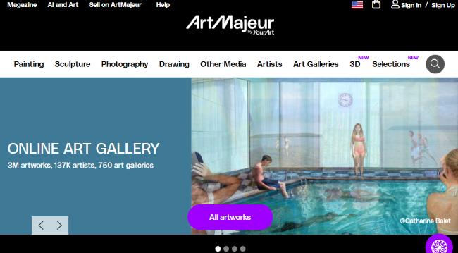 Artmajeur provides a global platform for artists to sell original artworks, prints, and digital art. The platform emphasizes direct artist-to-collector relationships.